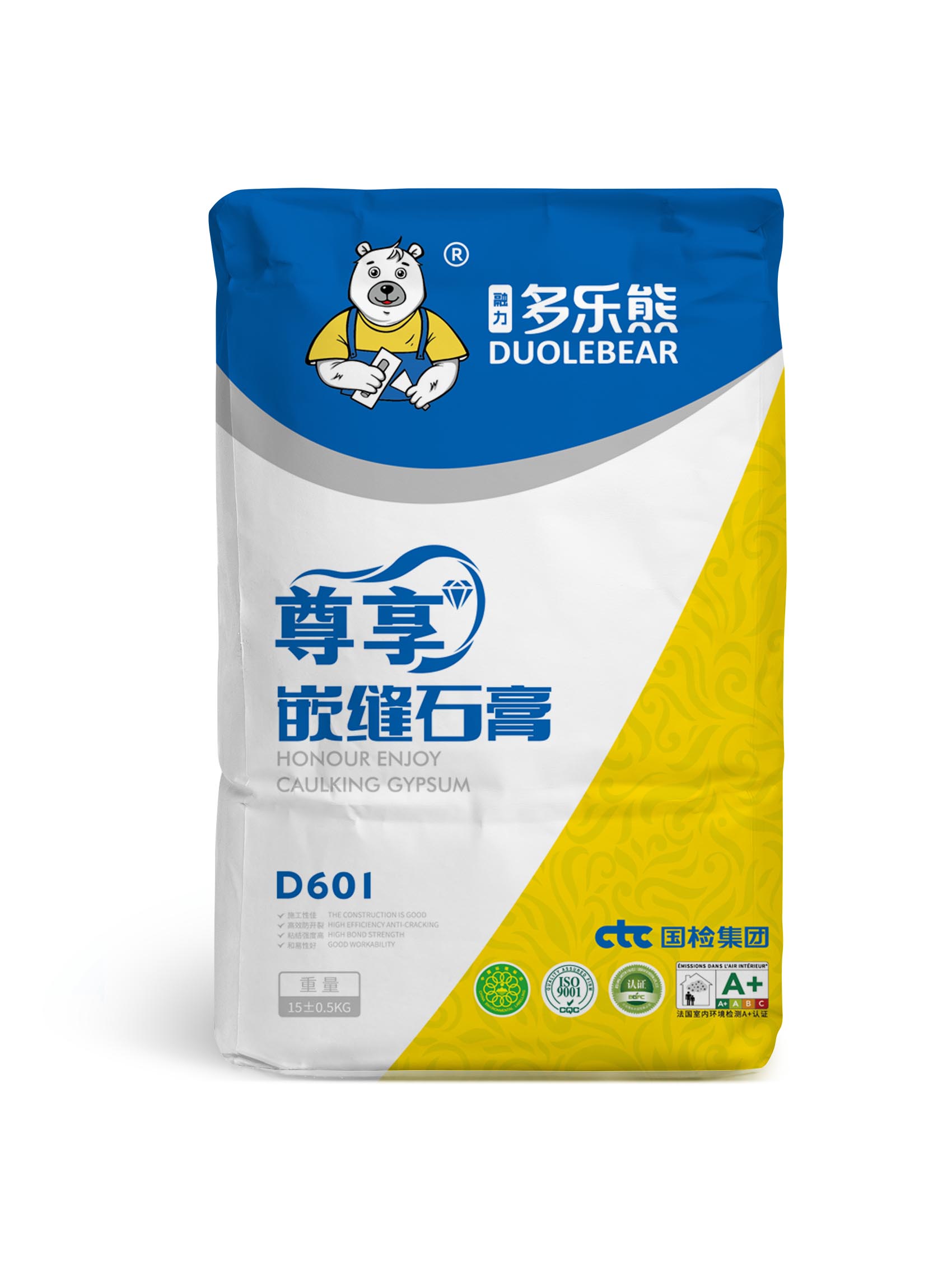 多乐熊尊享嵌缝石膏是一种墙面修补材料。和易性好、易施工、凝结硬化快、粘结强度高、收缩变形小、不开裂。适用于修补室内孔洞、沟槽及嵌缝,也适用于较平整的混凝土、砖混砂浆墙面和顶棚局部找平,不适用缝隙宽度小于2mm的嵌缝修补。
